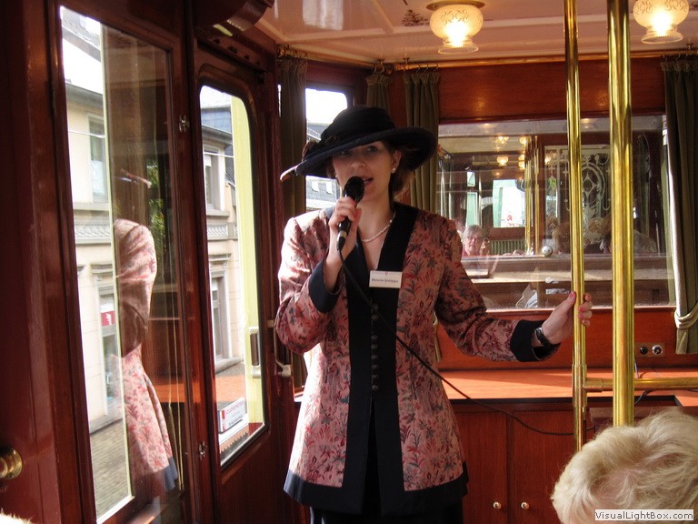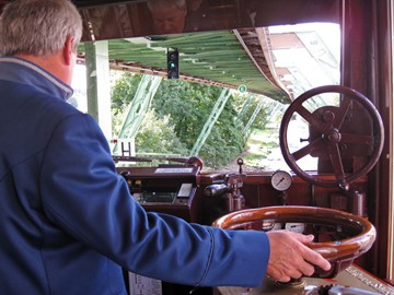 Das Highlight aber war eine ca. einstündige Kaffeefahrt im Kaiserwagen, dem historischen Waggon, in dem bereits Kaiser Wilhelm II und seine Gemahlin Auguste Viktoria zur Einweihung der Schwebebahn im Okt. 1900 über die Wupper geschwebt waren. Bei Kaffee und Weißbrot mit Rübenkraut genossen wir die ca. einstündige Fahrt von Vohwinkel nach Oberbarmen und zurück. Die Stadtführerin erklärte uns die Stecke und erzählte dabei eine Reihe von Annekdoten. An der Stelle, wo der kleine Elefant "Tuffi" aus dem Wagen gefallen war, hielten wir ehrfurchtsvoll an.