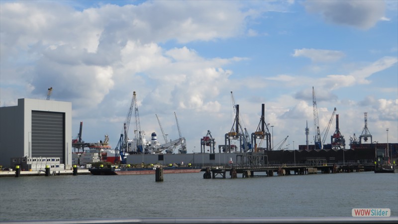 Anschließend unternahmen wir eine Hafenrundfahrt. Sie führte durch alte und neue Hafenbecken mit riesigen Container-Verladeeinrichtungen und gewährte uns einen tollen Blick auf die architektonischen Sehenswürdigkeiten der Stadt.