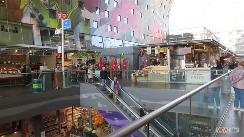 Zuerst besuchten wir die Markthalle, innen eine große Halle mit Verkaufsständen und außen ein Wohnhaus. Es sieht aus, als habe man einen Tunnel durch ein Haus gegraben.