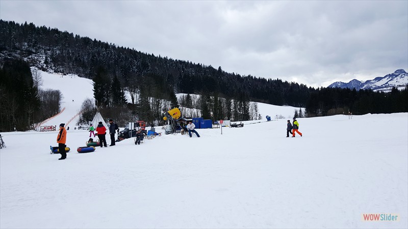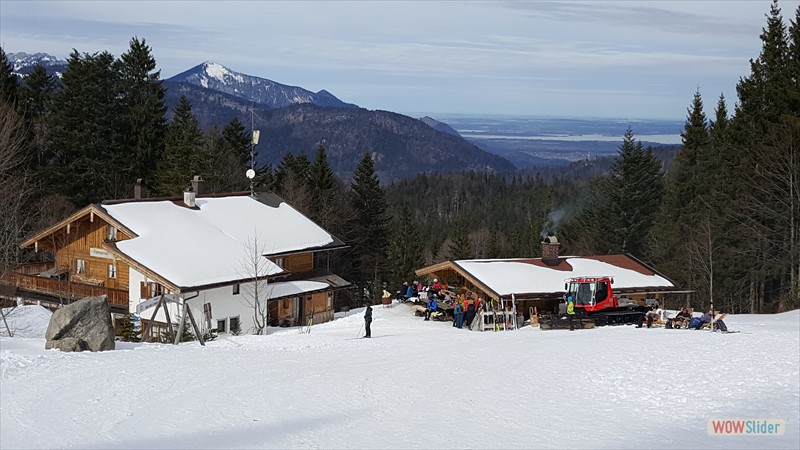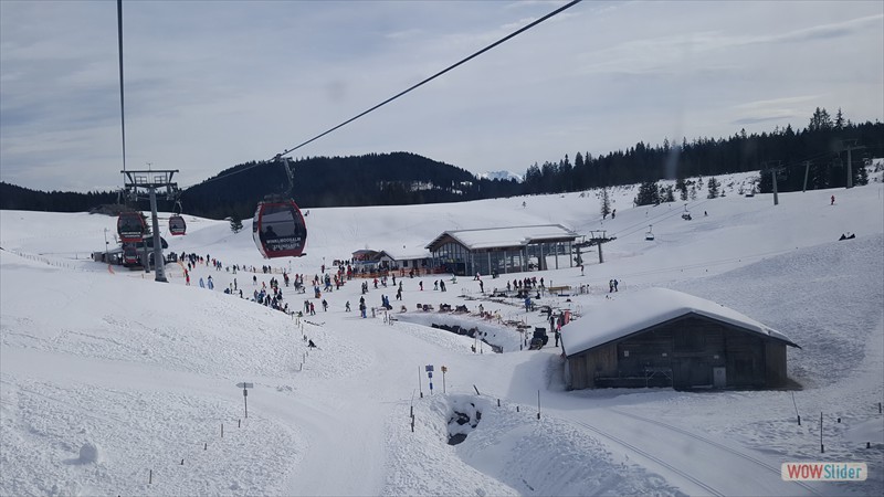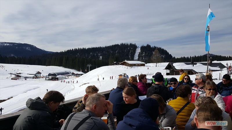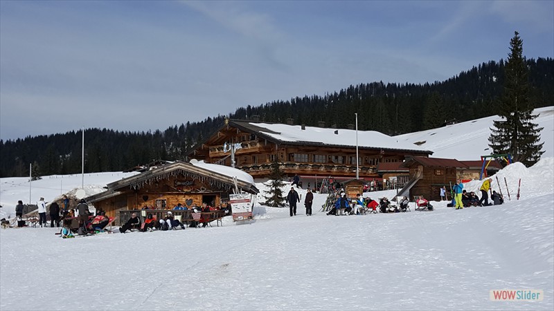 Natürlich fuhren wir auch mit dem Shuttlebus zum Seegatterl und von dort mit der Kabinenbahn hinauf zur Winklmoosalm, wo wir aufgrund der matschigen Schneeverhältnisse keine Runde durch den Wald wanderten. Eine Wanderung zur Sachenbacherhütte war zwar geplant, fiel aber wegen des Wetters buchstäblich ins Wasser.